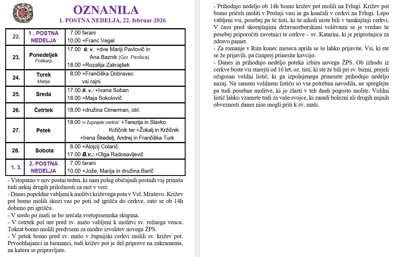 S klikom na spodnje gumbe odprete željena oznanila. 22. FEBRUAR 2026 FEBRUAR 2026 JANUAR 2026 DECEMBER 2025 NOVEMBER 2025 OKTOBER 2025 SEPTEMBER 2025 AVGUST 2025 JULIJ 2025 JUNIJ 2025 MAJ 2025 APRIL 2025 MAREC 2025 FEBRUAR 2025 JANUAR 2025 DECEMBER 2024 NOVEMBER 2024 OKTOBER 2024 SEPTEMBER 2024 AVGUST 2024 JULIJ 2024 JUNIJ 2024 MAJ 2024 APRIL 2024 MAREC 2024 FEBRUAR 2024 JANUAR 2024 DECEMBER 2023 OKTOBER 2023 SEPTEMBER 2023 AVGUST 2023 JULIJ 2023 JUNIJ 2023 MAJ 2023 APRIL 2023 MAREC 2023 FEBRUAR 2023 JANUAR 2023 DECEMBER 2022 NOVEMBER 2022 OKTOBER 2022 SEPTEMBER 2022 AVGUST 2022 JUNIJ 2022 JUNIJ 2022 MAJ 2022 APRIL 2022 MAREC 2022 FEBRUAR 2022 JANUAR 2022 DECEMBER 2021 KARITAS NOVEMBER 2021 NOVEMBER 2021 OKTOBER 2021 SEPTEMBER 2021 JULIJ 2021 JUNIJ 2021 MAJ 2021 MAREC 2021 FEBRUAR 2021 JANUAR 2021 NOVEMBER 2020 OKTOBER 2020 SEPTEMBER 2020 AVGUST 2020 JULIJ 2020 JUNIJ 2020 MAJ 2020 APRIL 2020