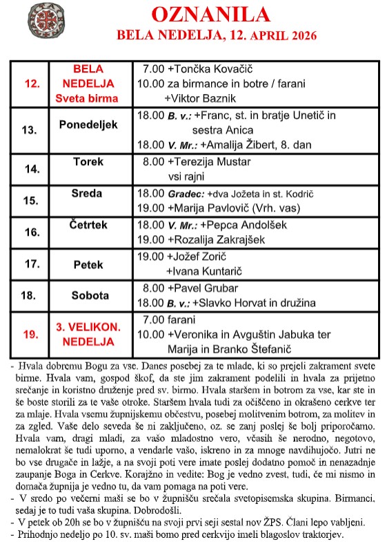S klikom na spodnje gumbe odprete željena oznanila. 12. APRIL 2026 APRIL 2026 MAREC 2026 FEBRUAR 2026 JANUAR 2026 DECEMBER 2025 NOVEMBER 2025 OKTOBER 2025 SEPTEMBER 2025 AVGUST 2025 JULIJ 2025 JUNIJ 2025 MAJ 2025 APRIL 2025 MAREC 2025 FEBRUAR 2025 JANUAR 2025 DECEMBER 2024 NOVEMBER 2024 OKTOBER 2024 SEPTEMBER 2024 AVGUST 2024 JULIJ 2024 JUNIJ 2024 MAJ 2024 APRIL 2024 MAREC 2024 FEBRUAR 2024 JANUAR 2024 DECEMBER 2023 OKTOBER 2023 SEPTEMBER 2023 AVGUST 2023 JULIJ 2023 JUNIJ 2023 MAJ 2023 APRIL 2023 MAREC 2023 FEBRUAR 2023 JANUAR 2023 DECEMBER 2022 NOVEMBER 2022 OKTOBER 2022 SEPTEMBER 2022 AVGUST 2022 JUNIJ 2022 JUNIJ 2022 MAJ 2022 APRIL 2022 MAREC 2022 FEBRUAR 2022 JANUAR 2022 DECEMBER 2021 KARITAS NOVEMBER 2021 NOVEMBER 2021 OKTOBER 2021 SEPTEMBER 2021 JULIJ 2021 JUNIJ 2021 MAJ 2021 MAREC 2021 FEBRUAR 2021 JANUAR 2021 NOVEMBER 2020 OKTOBER 2020 SEPTEMBER 2020 AVGUST 2020 JULIJ 2020 JUNIJ 2020 MAJ 2020 APRIL 2020